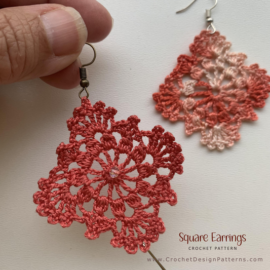 Crochet Earrings PDF Pattern – Beginner-Friendly Granny Lace Square Earrings